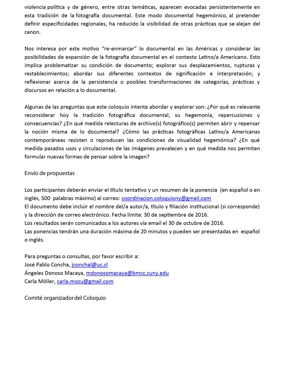Convocatoria Coloquio Fotografía (Español)